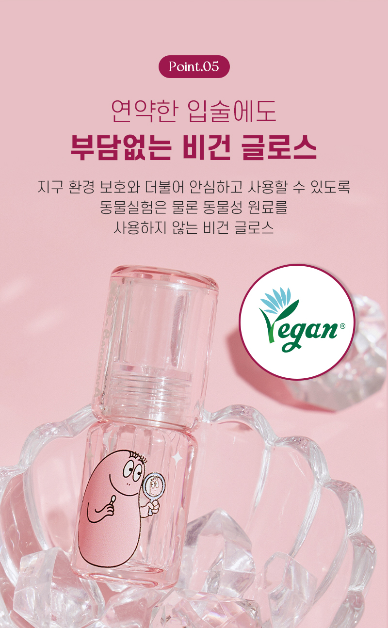 시럽처럼 맑고 투명한 텍스처가 입술을 부드럽게 감싸, 끈적임 없이 맑은 유리알 광택을 선사합니다.