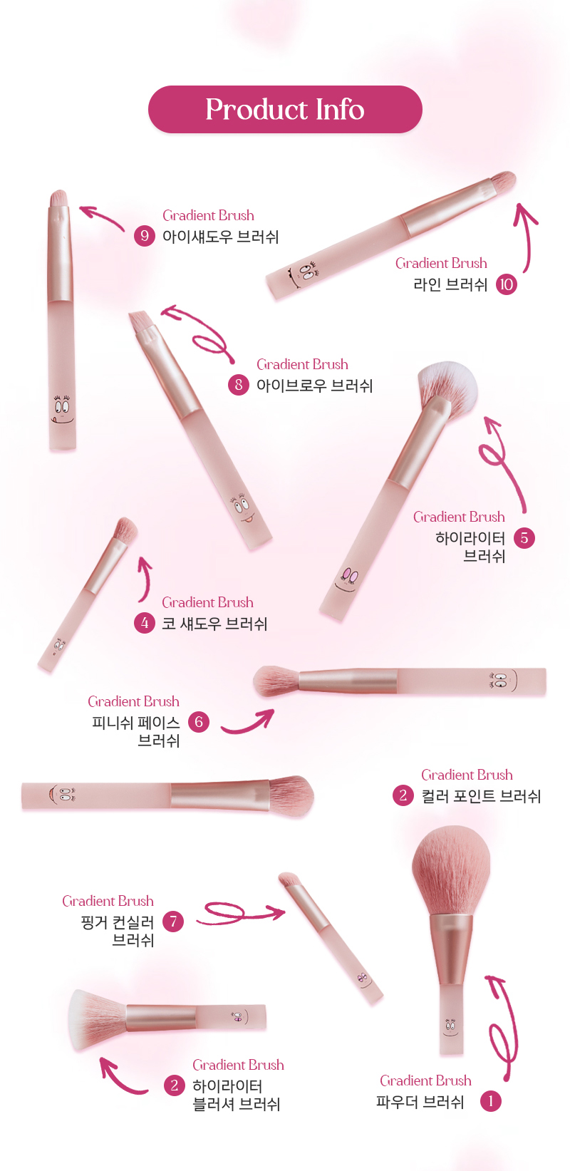 이모지 핑크 버블 그레디언트 브러쉬 세트